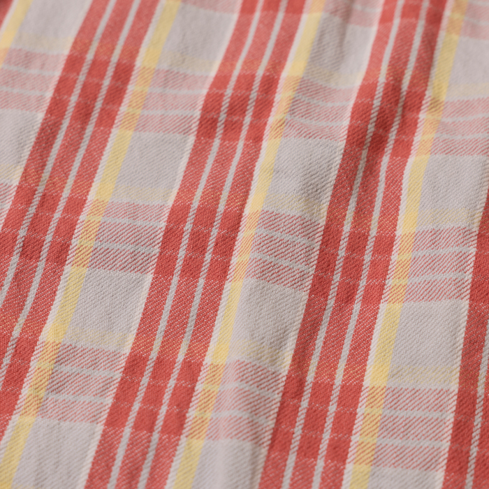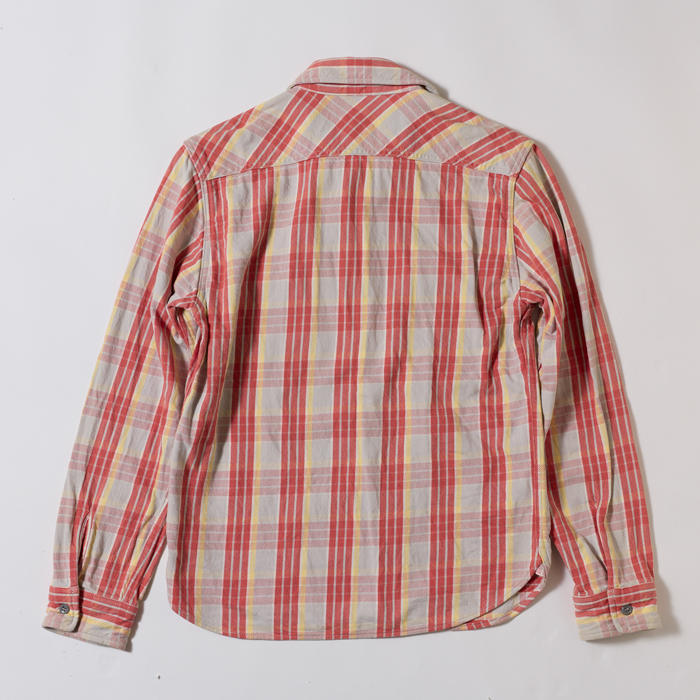 筆者が愛用して、『ヘイルメリーマガジン』の誌面から「現在フランネルシャツで最高峰にあるのが『JELADO』だ」とイチオシを貫いてきた。その結果、アメカジ上級者に最も愛されるフランネルシャツにステージを上げた。当該品は同ブランドのフランネルシャツで、コーラルレッドxイエローxライトグレーとういうアメリカン且つ抜群の色柄を持つ個体。このシャツの場合、サイズ「S」及び「M」に比べて「L」は5割ほど割高になる。ヘビーデューティーな素材が人気のコンディションも良好だ