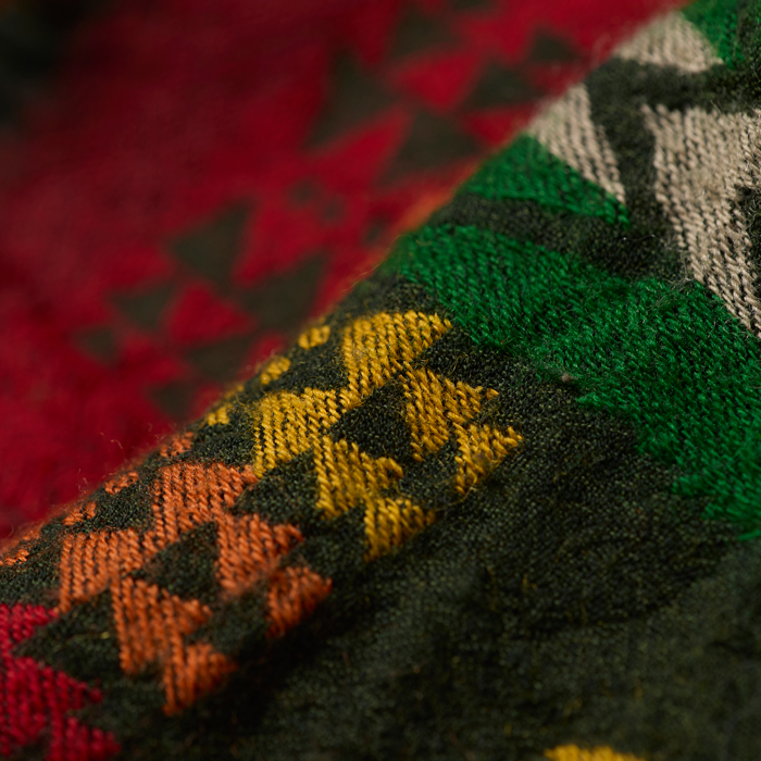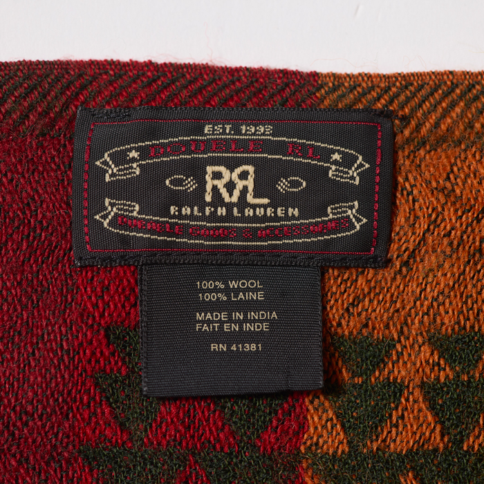 ライフスタイルを前提にすると、全米屈指のランチオーナーと言えるラルフ&リッキーのローレン夫妻。それは『RRL』のブランドヒストリーにもなっている。ランチオーナーのモチーフは、勿論、カウボーイ&インディアンだ。当該品は同ブランドからリリースされたビッグサイズのストールで、ダークグリーンxダークレッドxライトブラウンというカントリーライクなカラーリングがウリ。ネイティブアメリカンなパターンもアメカジ愛好家には嬉しい。ウール100%でミントコンディションだ