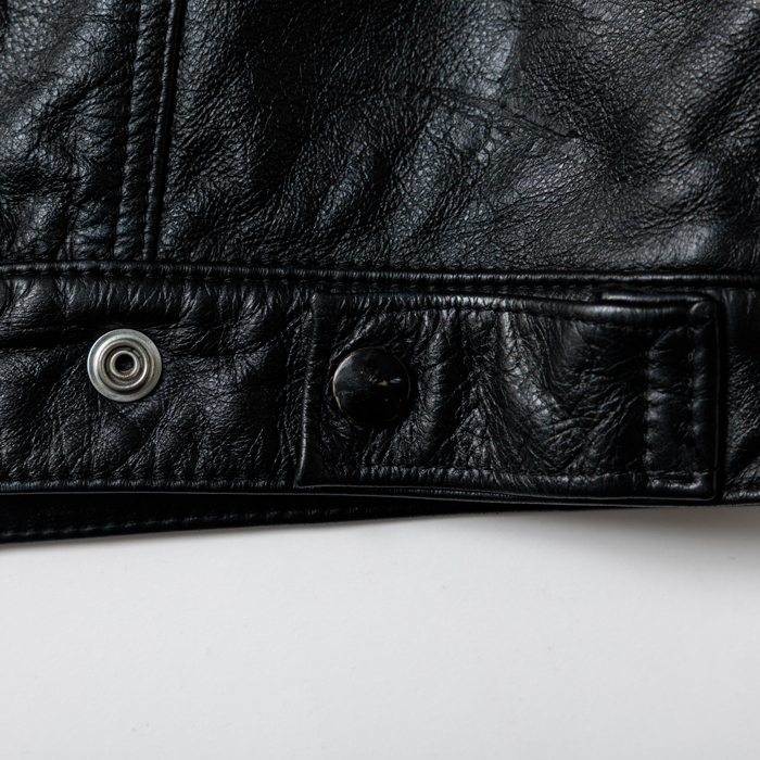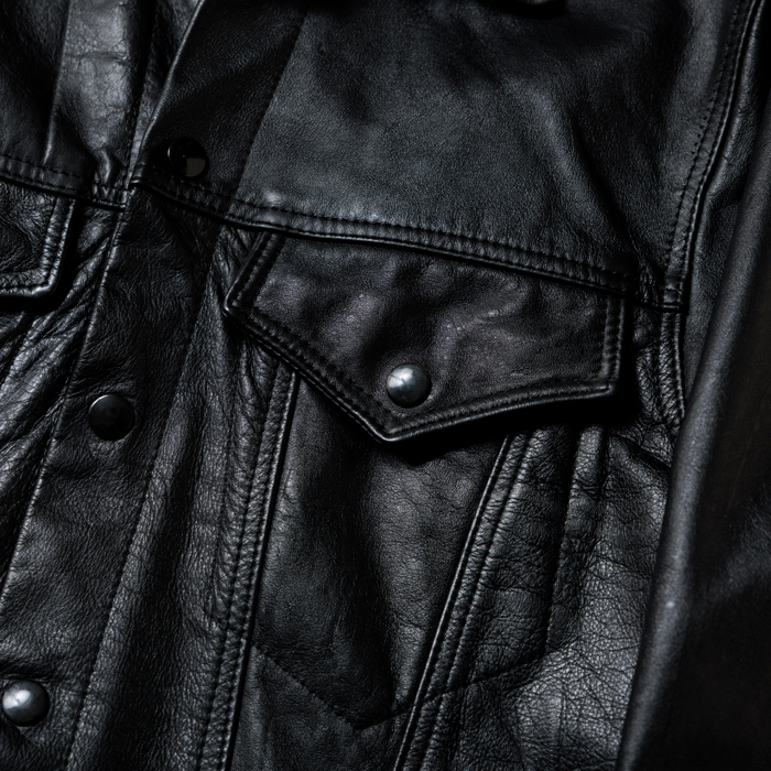 シルエットもディテールもクオリティも高い「MADE IN U.S.A.」のトラッカーJKTを出品しよう。当該品は『California Classics』がリリースしたブラックの3rd.型で、肉厚なシープレザーとルックスがウリな筆者のコレクションだ。12月末売り号のアウターJKT特集にも、筆者の愛用品として掲載されている。同月号にはレザー達人たちのジャケットが数多登場しているが、強者は揃ってこのレザー3rd.型を着用している。当オンラインショップは現在セール中に付き、このレザートラッカーJKTにも特別プライスを設定している。よってアメカジ上級者に是非購入して頂きたい。デッドストックと思えるほどのミントコンディションだ。急げ!ヘイルメリー愛読者‼︎