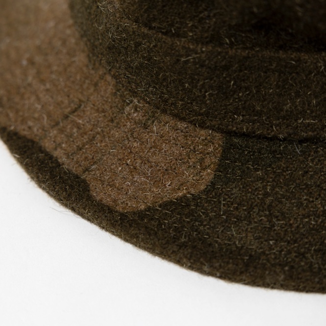 ダッズ世代にフィットするワンランク上のハットを出品する。当該品は『Nigel Cabourn』がリリースしたバケットハットで、上質なウール100%素材とオリジナルのカムフラージュパターンが愛好家に人気だ。ナイジェルデザインなので、帽体と鍔のバランスが絶妙。ウール素材ゆえ、マットな見え方もダッズ世代には嬉しい。筆者は、アウトドア系コーデ及びミリタリー系コーデに着用していた。元上代は2万円オーバーだったと記憶している。サイズ58cmでミントコンディションだ