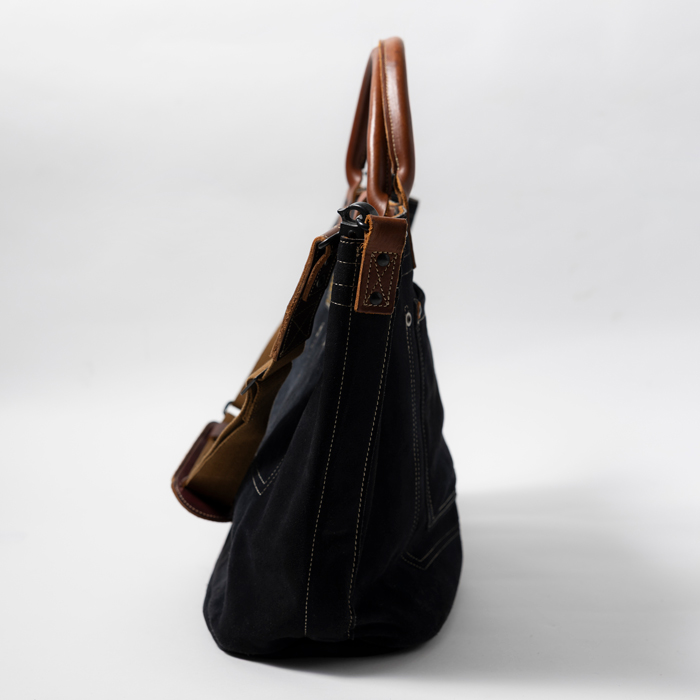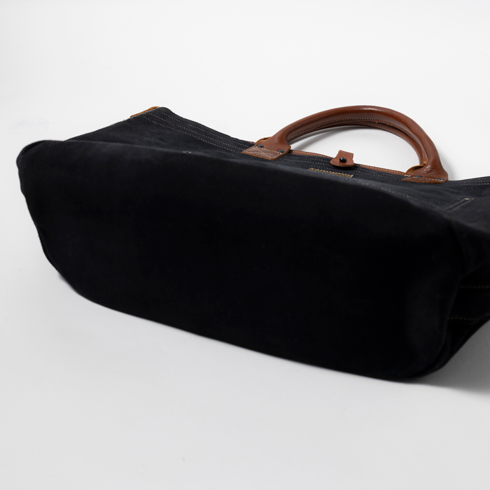 鞄評論家を自称して年間60個のバッグをテストしている。その結果、編集者にベストチョイスだと確信した大型の2WAYバッグを出品する。当該品は『COLIMBO』がリリースした「TRAPPER’S CARRY ALL」で、リアルレザー(肉厚スエード)のブラックカラーだ。タフさとディテールのこだわりはさすが『COLIMBO』で、ハンドルもストラップもレザーを用いたヘビーデューティー仕様で。インサイドには小分けポケットが配置される。テストのみ使用のミントコンディションだ
