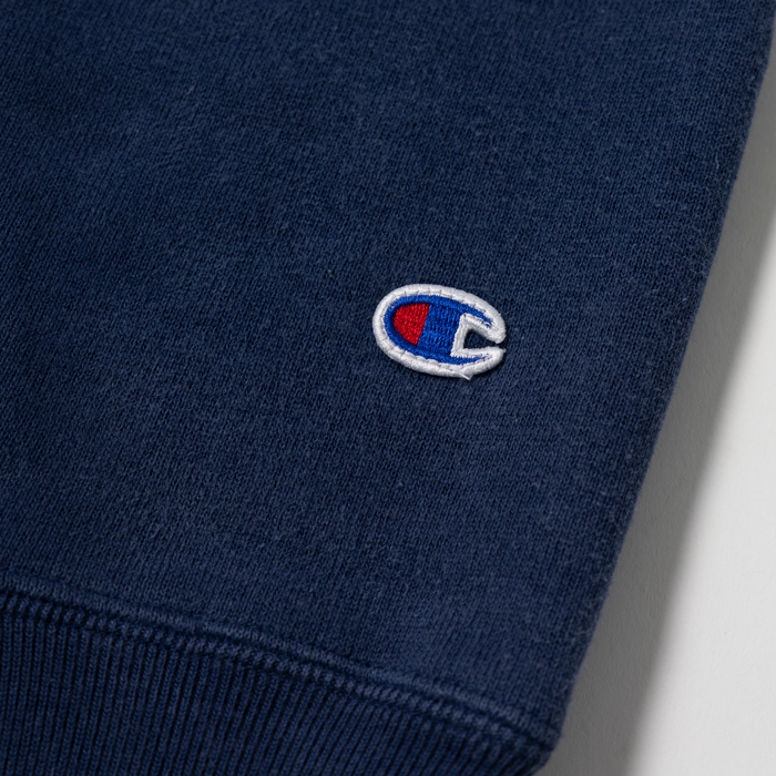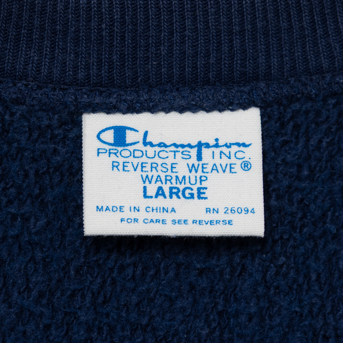 大学1年から『champion』リバースウィーブを愛用して、既に50年という年月が経過している。その経験から申すと、杢グレーとネイビーのクルーネックが最も着用頻度が高い。加えて、お気に入りのプリントだと愛着が増す傾向が強い。当該品は青の単色タグが付く復刻版『champion』リバースウィーブで、上記した❶ネイビーボディ❷クルーネック❸お気に入りプリントと三拍子が揃っている。胸には、インディアンのアイコンとチーム名がプリントされる。グッドコンディションだ