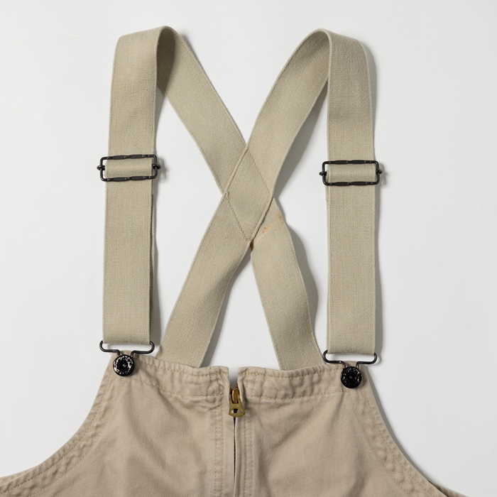 最近『ヘイルメリーマガジン』の表紙及び特集のスタイリングページで、頻繁に着用しているオーバーオールシリーズを出品しよう。筆者が各色コレクションしている当該品は、『THE CORONA UTILITY』が5シーズン前にリリースしたミリタリー系デザインのオーバーオールだ。何気に着用したところ、編集部にアメカジ愛好家からの問い合わせが殺到した。既に完売且つ同ブランドからの発売は予定されていないので、友人達からは「売ってくれ!」コールが連呼されている。熟考した結果、公平を期して自身のオンラインショップで販売することにした。このベージュは2025年8月号の表紙で着用したもので、探しているアメカジ愛好家は多いと思う。素材はヘビーデューティーなモールスキンなので、真夏を除く3シーズンで着用可能。軽度の経年変化があたりをつくり、良い塩梅にエイジングしている。サイズ「M」だが「L」に相当。元上代3万5000円のグッドコンディション物。早いもの勝ちだ!