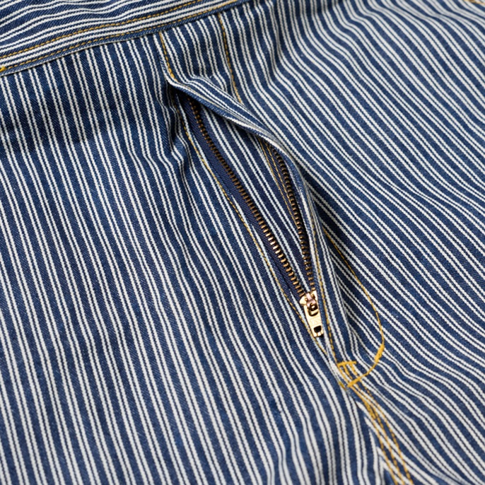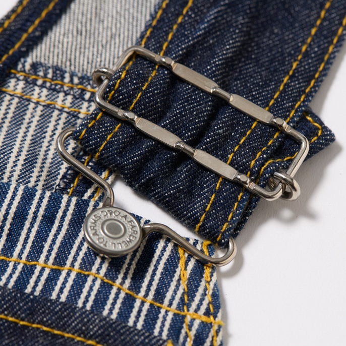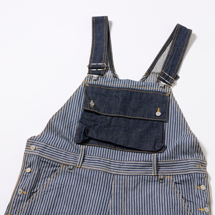 ブランドが終了しているのに加えメンズの球数が少ない関係で、『Country Wear』のジーンズ或いはワークウエアはほとんど市場で目にしない。このブランド、『Hysteric Glamour』の関連ブランドなので、未だマニアックなファンが多い。当該品は同ブランドがリリースしたオーバーオールで、ヒッコリーとデニムのコンポジット型だ。デニム及びヒッコリーのクオリティが高く、シルエット、縫製、ディテール、付属などもパーフェクト。まだ水通しをしていないミントコンディション物だ