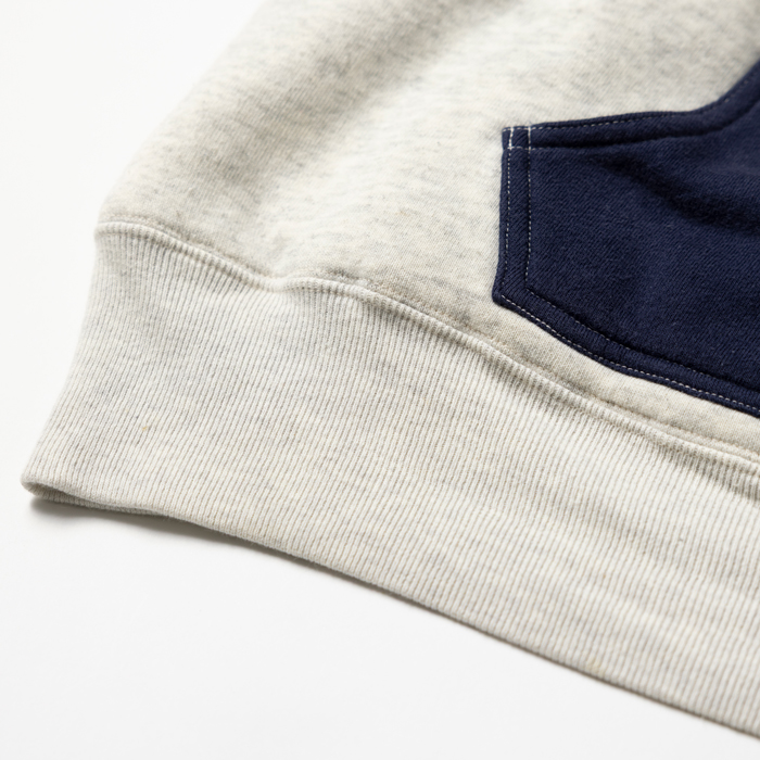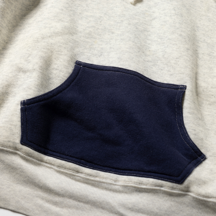 誰もがヴィンテージと見間違うスウェットパーカを出品しよう。意図してタグを外しているが、当該品は『FULLCOUNT』がリリースしたダブルフェイスのフーディー。同ブランドが、40sのヴィンテージピースをターゲットにした10年ほど前のモデルだ。当時の色味に近い杢グレーボディ、後付けのフード、ネイビーブルーのカンガルーポケットが、リアルな雰囲気を醸し出している。現在、レプリカのダブルフェイスは上代4万円レベル。今回は、特価設定での出品。グッドコンディションだ